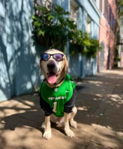 I’ll be 11 human years on Oct. 10, which is 77 in dog years. I love to chase a ball, but I’ve had to chill out a bit, so I don’t get injured. Nic and I go on five- and six-mile walks all the time. I must admit I still chase some of the geese on the golf course. I’m pretty chill, so when I see squirrels, I don’t chase them, and the mailman and I are bros – he gives me treats.