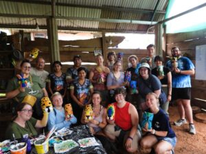 The last day, they spend with the Boruca indigenous community. Their major source of revenue right now is mask-making. These are traditional masks that have been done for centuries. Now they’ve become souvenirs. They’ve entered the tourism industry through making these masks. The students actually help in that process. After they’re carved, students help paint them.
